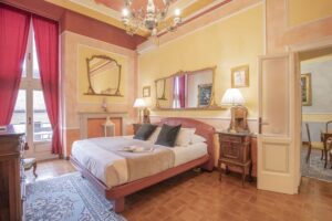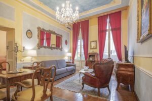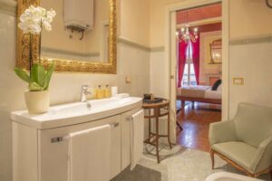 The Dante Suite with a balcony has a unique view of Piazza dei Signori (Piazza Dante). It is a spacious and comfortable suite in one of Verona’s best locations. The suite is located on the first floor of the 15th Century Noble Venetian era Palazzo called Ca’ Turrazza (Please note it is located on the first floor and there is no elevator). Our suites feature a minibar, seating area, complimentary high-speed WiFi, flat screen TV , Nespresso machine with unlimited capsules and chilled Prosecco on arrival. Private parking is possible at a location nearby at an additional cost.