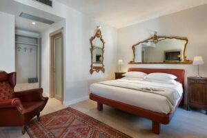 Deluxe Rooms with city face the historic Via Garibaldi and its royal palazzo’s. All suites are individually and uniquely furnished, providing a unique and unforgettable experience. Deluxe Rooms includes minibar, complimentary Nespresso, tea and coffee facilities and Corte Realdi’s exclusive in-room Italian breakfast served anytime.